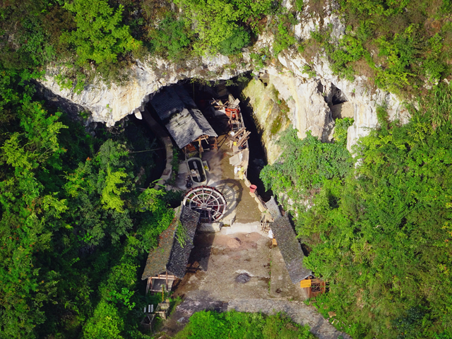 穿洞,是村里最“资深”的作坊,是一处纵深不知其底的天然溶洞,洞深1500米以上,石壁能遮避风雨,这里水源充足,溶洞可以保持恒温,制作的纸张质地柔软,是块造纸宝地。