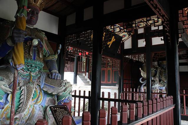 踏上城隍庙36级阶梯,入“灵官楼”,楼上正襟危坐着的灵官是山神和威德天神,气宇轩昂站着的灵官是东南西北四大天王。灵官像使用我国传统泥塑工艺彩塑而成,形象鲜明,维妙维肖,堪为艺术瑰宝。