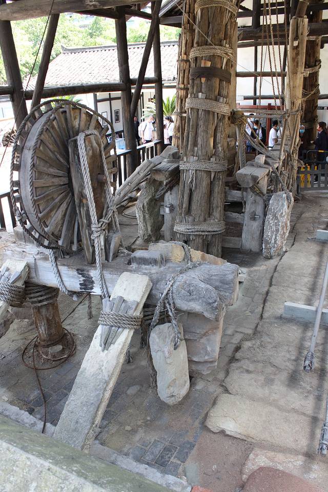 景点历史📖:燊海井开凿于清代道光三年(公元1823年),凿成于道光十五年(公元1835年),历时13年,方始凿成,凿成时井深1001.42米,随后几经加深达到现井深1100米。燊海井既产卤,又产气。是世界上第一口超千米的大井。井凿成后,每天喷出万余担的黑卤,日产天然气8500多立方米,烧盐锅80多口,到1940年每天还自喷黑卤10000多担,天然气4800到8000立方米。燊海井天车被誉为四川自贡盐场奇观之一,是将若干杉木连结,以竹篾绳捆扎成巨大的支架,竖于井口,用于采卤、淘井、治井。天车井架十分壮观,不管从采卤或者古建筑角度来说,都是盐都自贡特有的、不可多得的文物。