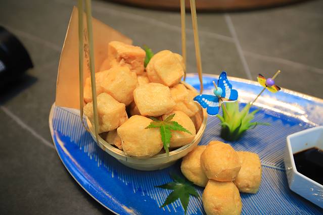 茭白、年糕、芋饺等新昌特色小吃被厨师的双手赋予神奇的魔力。将茭白一支支挂在雅致的笔架上是“越女天下白”,将寻常的新昌年糕拼成山便是“天姥连天向天横” 一个菜名就是一句诗,而且菜摆盘得很精美,第一道是端上一个汤,美名曰“天姥功夫茶”,唐诗更谓之“茶炉天姥客”。