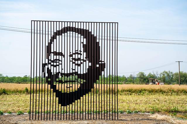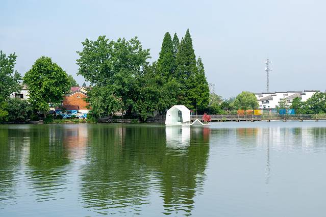 浮在水上的微型美术馆、绘在田野的巨幅稻田画、建在池塘边的空中图书馆…在雨靴里种上水稻当盆景,废弃农具家具也可以变成前卫雕塑,农家门口的一个个小菜园现在都成为游客的网红打卡处。随便走进一条小巷就会遇上一座雕塑或一幅涂鸦……这就是犁桥村。