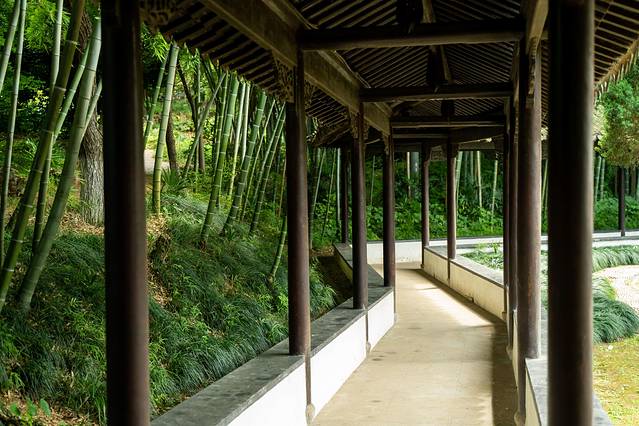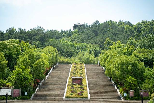 沿着漫长的石阶向前,石阶两旁的树木郁郁葱葱,别有一番滋味。山间有松,有亭,自是幽境。拾阶而上,一处处的亭台又向我们诉说着那古老的故事。
