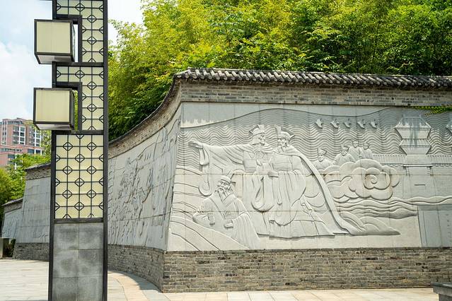 浮雕文化墙是汉武文化生态园的一大特色,吸引众多游客驻足欣赏。“汉武帝射蛟” 、“秦皇南巡”、 “松阳关津”….一个个历史典故跃然墙上。