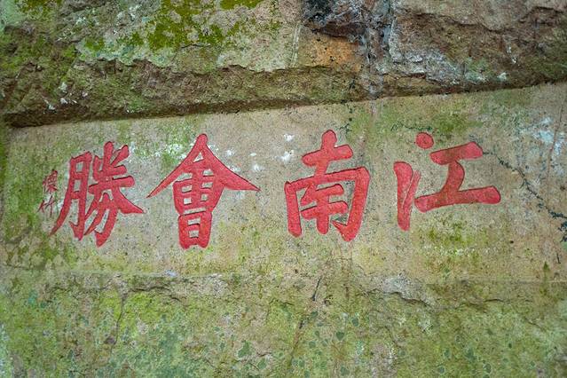 拾阶而上,便看到了十二景中第一景--王安石讲学的的荆公书堂;书堂对面便是参天古枫掩映的爱晚亭,即枫林唱晚景点;裸露岩石被古檀缠抱寓意坚贞爱情的檀爱抱石;采樵种黍七星明的七星采樵;溪涧恢宏的乱石听涛;洞深幽暗暗通明的天书问道;亿万年前海底沉积岩形成的冰川奇观;还有那叶山竹海碧青青的无忧竹海,翘角飞檐气势凌的望江阁等,将这大自然鬼斧神工与人类巧夺天工的艺术有机结合,展示出如许诗意浪漫。