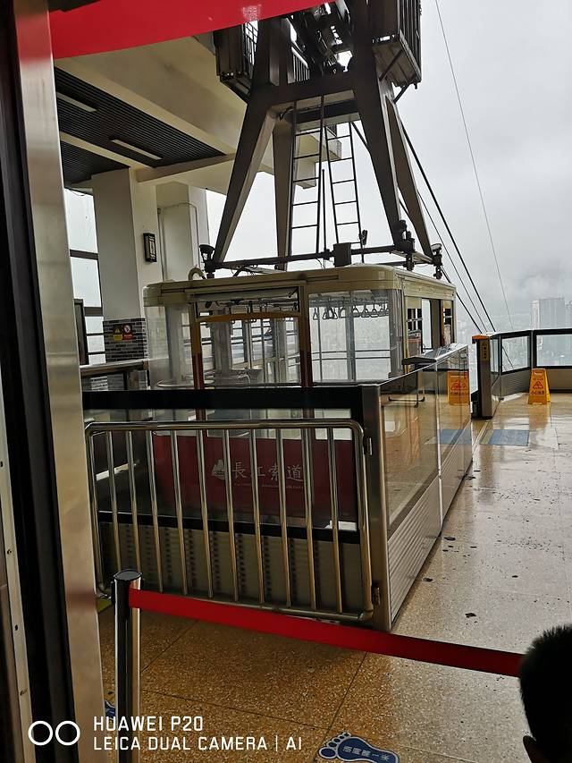 索道时间不长,车票20,这是坐在索道上拍得对面的车厢,因为下雨,所以很模糊