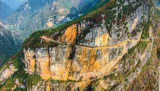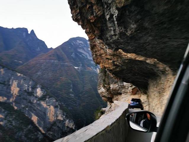 挂壁公路1200米,由23户村民,80多人历时4年半用原始的铁锤,钢芊等挖掘出来的