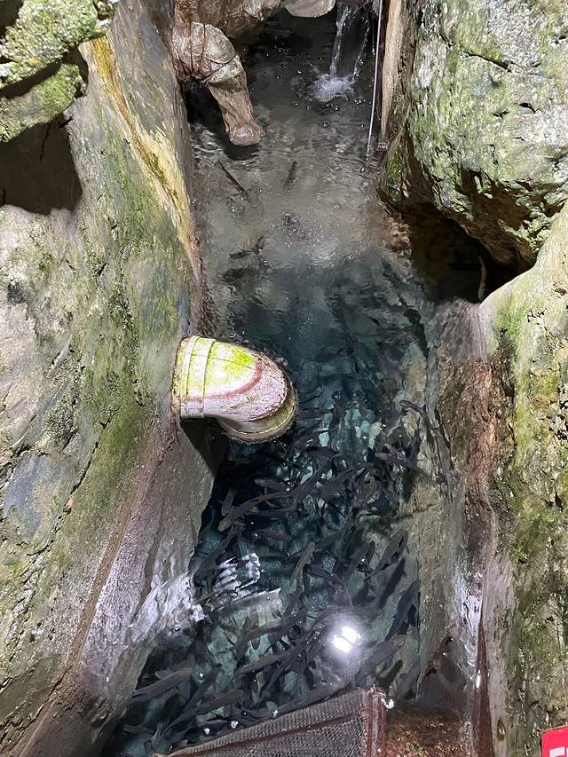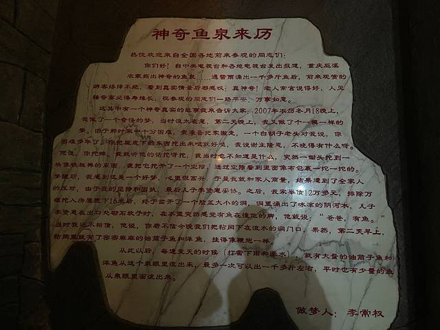 08年因做梦有宝藏,贷款12万掘地16米挖出的泉,随水而涌出阴河的鱼成为一大奇观,电视台播出后,络绎不绝的人来参观,门票5-10元,多的时候每天有1000斤,可买,可吃,现在渔业管理,泉眼被堵,人工养殖供参观