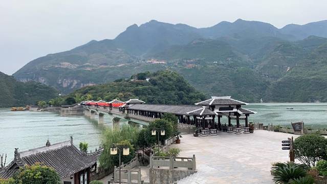 经过一风雨廊桥,就可以到达白帝城,库区蓄水后成为了孤岛,山不高,但有抬滑竿的,120元一人