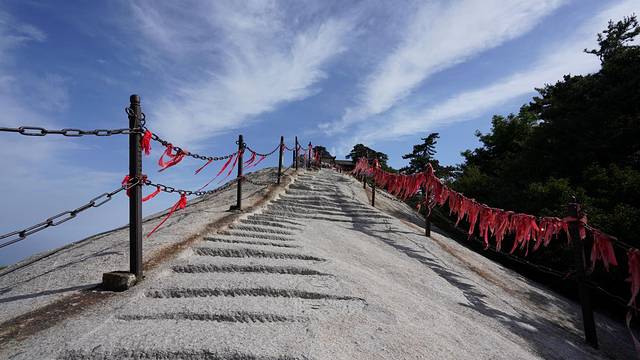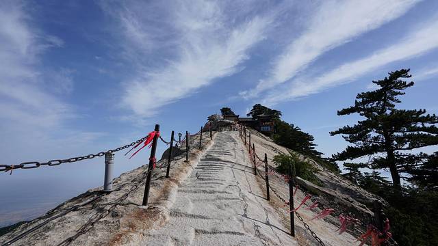 景区游玩线路:缆车线路:华山缆车有两条西峰、北峰,虽然西峰票价(140元,北峰80元)昂贵,但还是很对推荐座西峰缆车上山。西峰缆车非常值得,因为可以看到由华山花岗岩纹路形成的巨大山峦屏风,宛若一幅幅壮美的山水画扑面而来,很棒、很震撼!漓江上的八马画山是秀美,华山的“画山”是壮阔。山顶线路:出缆车站后先去观赏西峰(最彰显华山险峻的峰)→南峰(华山最高峰)→东峰(朝阳峰,顾名思义看日出)→中锋→北峰(华山最低峰),从北峰缆车下山。如果是1日游,如果非登山爱好者,如果体力一般般者,如果不打算在山顶看日出赏日落,建议选择这条一路下山的线路。