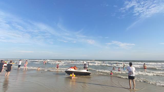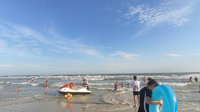 🅾️北海银滩,天下第一滩,海大风大浪大,沙子细腻洁白,沾到手脚上,不去拍打不注意看,可能都看不出来~。一定要要太阳当空照的时候来银滩,才能看得到阳光照耀下沙子的雪白发光的感觉。这边看不了海上日落,要看海上日落,去侨港风情街或者金滩,金滩远一些,侨港风情街离银滩近,2-3公里,骑个城市电动都方便~。有摩托艇可以坐,可以讲价,不超过100块。晚上8点还有银滩雕塑“潮”的音乐喷泉。