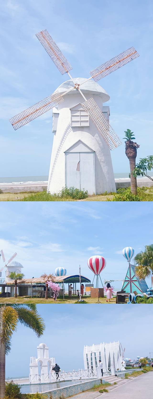 🅾️侨港海滩,在喜莱蓬酒店后面,有个网红打卡地,是婚纱拍摄地来着~。酒店左边有条小路可以到,也可以直接从酒店进去,在酒店后门。可能是经过海风吹蚀,梦幻蓝已经褪色,变成旧物白,听说这边看日落也很绝美。