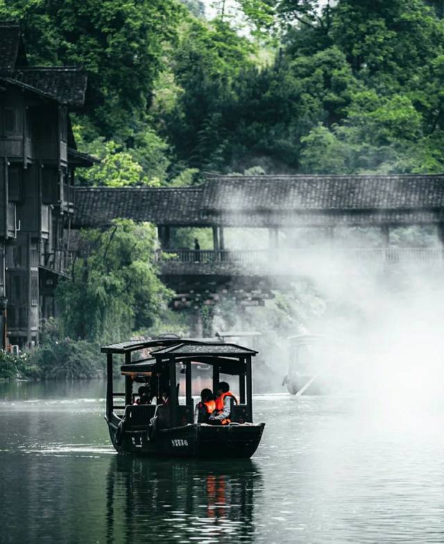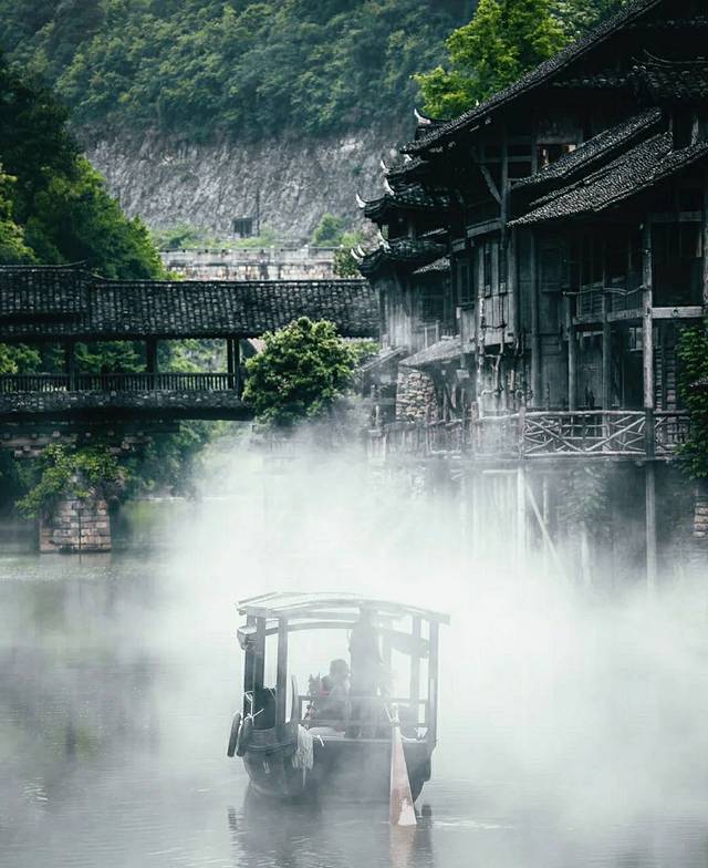 雾气朦胧,一艘小船摇摇晃晃的在水上飘着,一种别样心绪影响着我的心情。