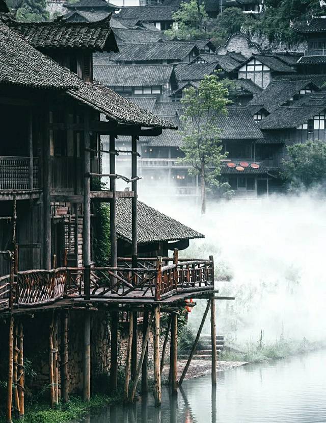水边,雾起,吊脚楼,这些以前不会搭在一起的现在全部融合在这里了,就像是遵义给我的感觉一样,清冷又带了一丝妩媚的小城市,有着让人向往的生活
