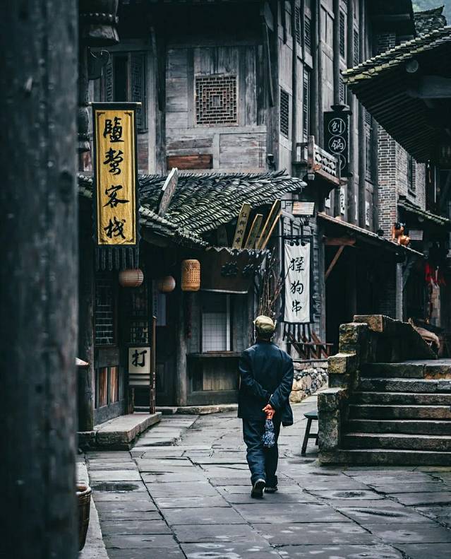 背着手拿着雨伞的老人,这好像是他们老一辈独有的走路姿势呢,老街中走过,不知他是否也在回忆以前年少时的生活,是否会想起自己18岁时暗恋的女子呢