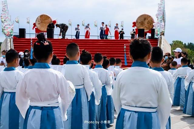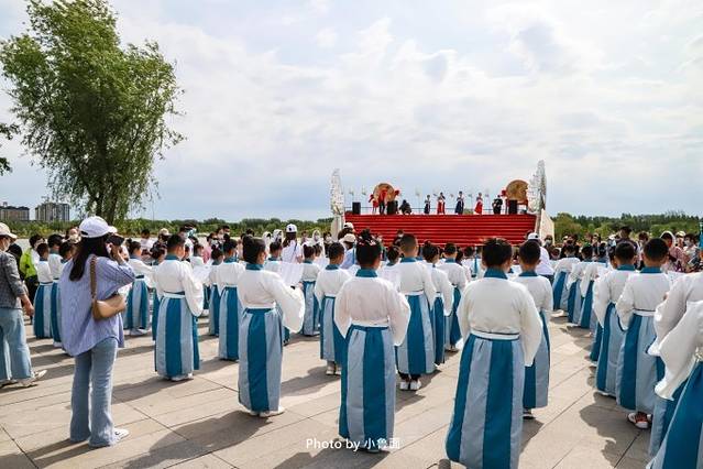 这边还有学校组织的端午节诗朗诵活动,现场围观的人也不少。