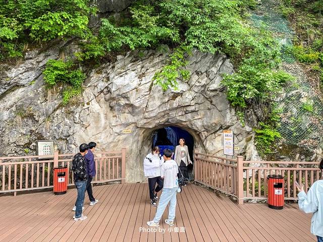 从清音谷到这边走路大约七八分钟,六百米左右也不是很远,如果不想走路也可以乘坐景区的观光车,一站地就到了。