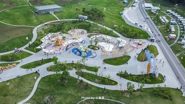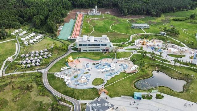 从我给大家拍的航拍可以看到,这有奇遇儿童乐园、星空营地、帐篷营地、烧烤营地、房车营地、奇遇城堡等。