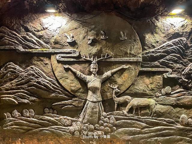 步入溶洞,每一步都在感受历史。两侧洞壁上,不时可见浮雕和岩画,白山 黑水 情、捕猎捕鱼文化、鹿养殖文化、鹿神舞文化、鹿医药文化以及康熙东游、鹿姑传说、福禄寿喜等传说故事都蕴含在这些浮雕岩画中。