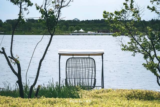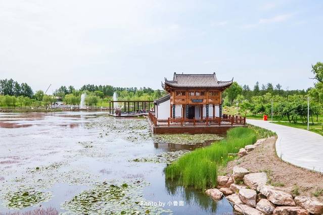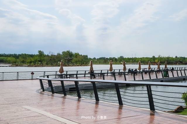 梅溪湿地观赏区域占地 10 万平方米,湖岸设有临湖观景台、再观澜船舫,湖面建有长廊及湖心亭。