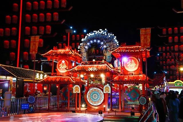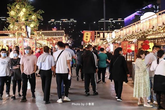 梅河口 东北 不夜城街区全长533米,占地面积1万多平方米,以国潮文化为主题,汇集古风古韵、 关东 风情、现代文化等诸多元素。