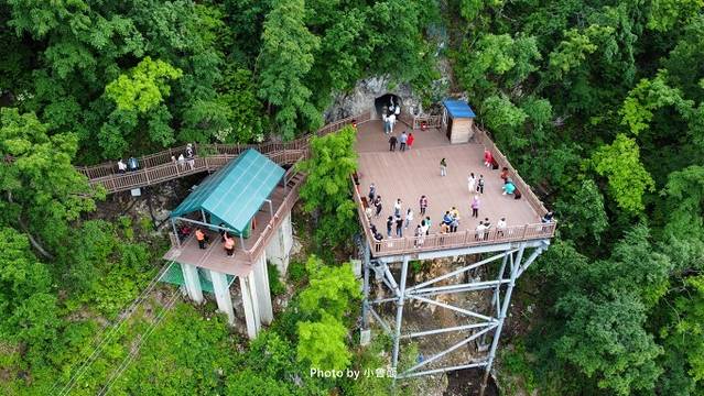 这边也属于一个游客集散中心,有餐饮、洗手间之类的。要去天涯秋千、玻璃悬廊、高空滑索、溶洞、都需要从这里前往。