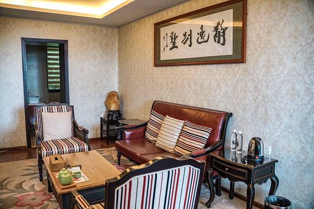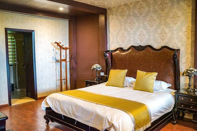 管家小哥哥拿着钥匙亲自带我参观,我于是终于得以一窥这位“民国第一奇人”曾经的居住地。这幢房子名曰“静逸别墅”,曾是他的度假别墅,如今几经周折改建为酒店对外开放。别墅的二楼,有一间顶配的套房,家具、墙纸、地毯似乎都依着原样没有改变过。