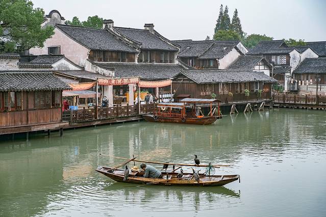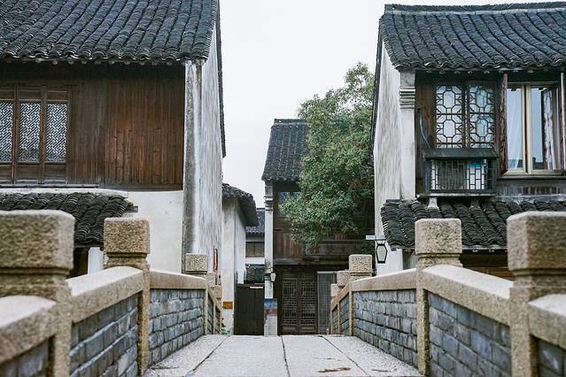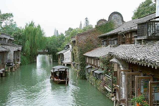 说它没变过,它却实实在在是这几十年来发生变化最大的一座古镇。原本的江南小镇,经过了多年的商业开发,如今成为了最富盛名的水乡古镇。古朴与现代化在这里完美融合,它也成为了世界互联网大会的永久会址。白墙灰瓦的老建筑与现代化的会展中心在这里相遇,很难说哪一种元素在此更胜一筹。