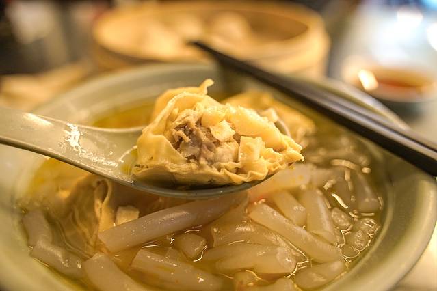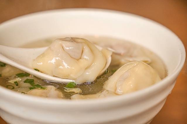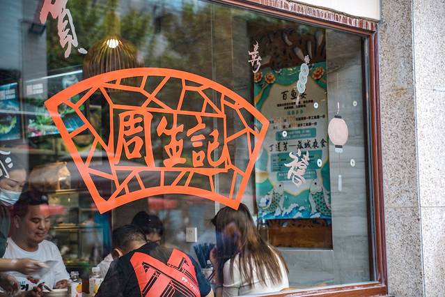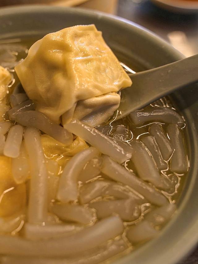 千张包虽然扎实,但浅尝辄止下我还是决定有所保留,一墙之隔的周生记依然勾去了我的魂魄。周生记馄饨以白嫩细腻、光润晶莹、馅心饱满、皮薄滑润、入口汁浓、油而不腻、味道香鲜的特点脱颖而出,成为湖州家喻户晓的名点小吃。馄饨汤的熬制更是别开生面,用腿骨、鸡脚骨等文火煨成乳白原汁兑成。周生记的馄饨用料非常足,馅大饱满,或许是因为里面加了芝麻,吃起来格外香。