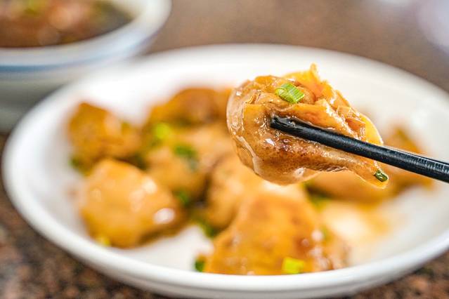 店里面卤的“三宝”,一阵阵香气扑过来,大个儿的狮子头,圆滚滚的卤蛋还有扎实的香干,搭配馄饨来上一口,是一整个身心的大满足!