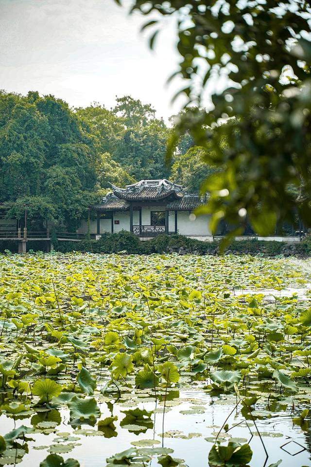 小莲庄的入口毫不出奇,但内里却宏大复杂到几乎会迷路。穿过狭窄的门堂,我先是被一股脑铺展开来的莲花池给惊到了。虽不是繁花盛开的季节,但接天莲叶的壮观已经让我可以想象盛放时节的诗情画意。绕莲花池一圈,分别是宽敞的亭台楼阁、碑廊(有主人刘镛亲笔字迹)、夏日赏花的凉亭“退修小榭”、曲径通幽处的小庭院。庭院内的假山可以登高,虽已被繁茂的树木遮挡了视线,却足以在广阔的庭院中觅得一处私密之所。