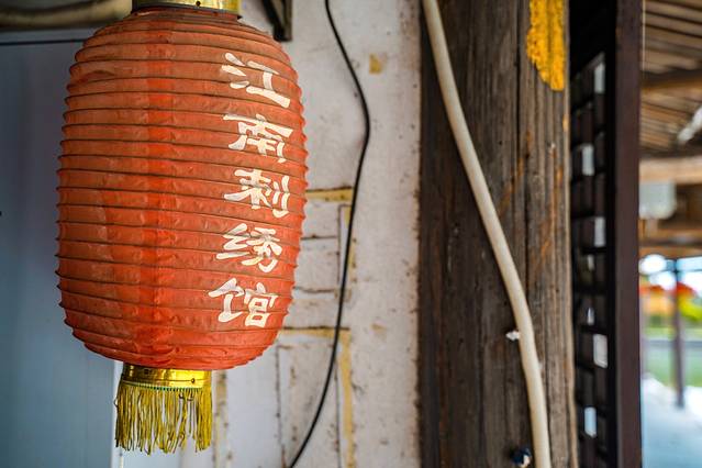 南汇街一处民宅,挂着招牌“江南刺绣馆”。局促的老房子只有几间狭窄的房间,大都堆满了各种刺绣材料和作品,这里是许多当地艺术生的实习实践基地基地。我进入参观时,主人正在另一个房间向客人讲述着自己的艺术理念。不敢过多打扰,匆匆在房前屋后拍了几张照片,就赶紧离开了。