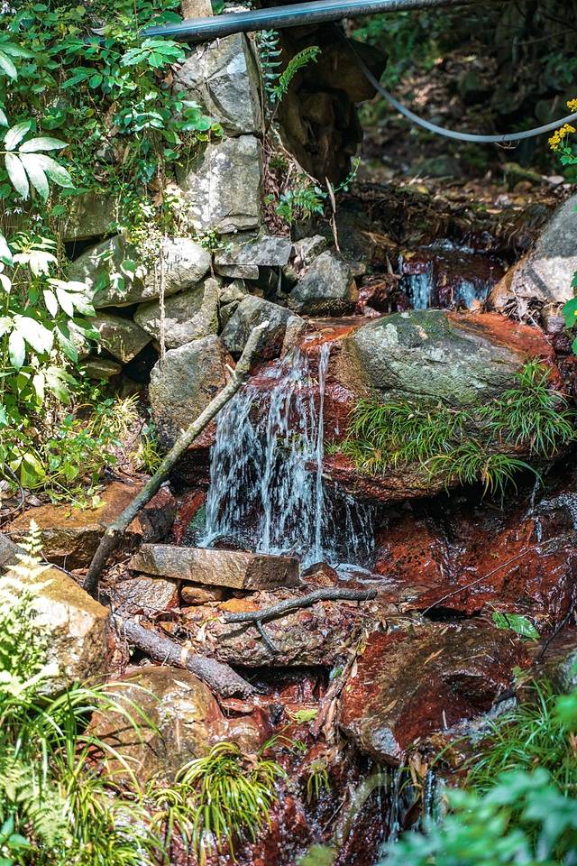 经过一处满是祈福红线绳的平台,向一位工作人员再次确认了方向。几分钟后,我看到了第一缕山泉水,从我刚才走下来的高处哗啦啦地流向山底,发出清脆的叮铃声。