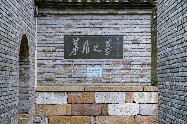 从房子后面绕过去,是茅盾陵园所在地,茅盾与夫人便是合葬于此处。在人来人往的古镇上,此处显得格外幽静。墓地之外,有一“怀思亭”,供前来瞻仰的人们休憩之用。