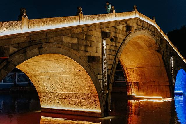 “月河古镇”的由来,是因为它周围的河水是一轮明月,因此得名“月河古镇”。因此每到夜晚明月高悬,这里就成了诗画中的江南水乡。