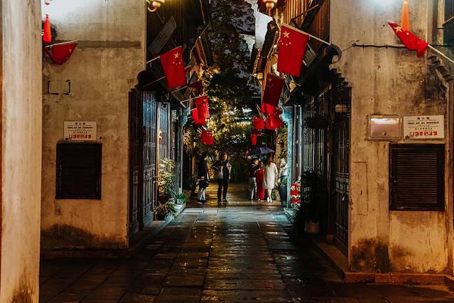 一个下着淅淅沥沥小雨的夜晚,一条空无一人的街道,一次湿漉漉的相遇。是我与这条古街初遇的缘分。江南水乡,与其说是一番景致,不如说是一种情怀。