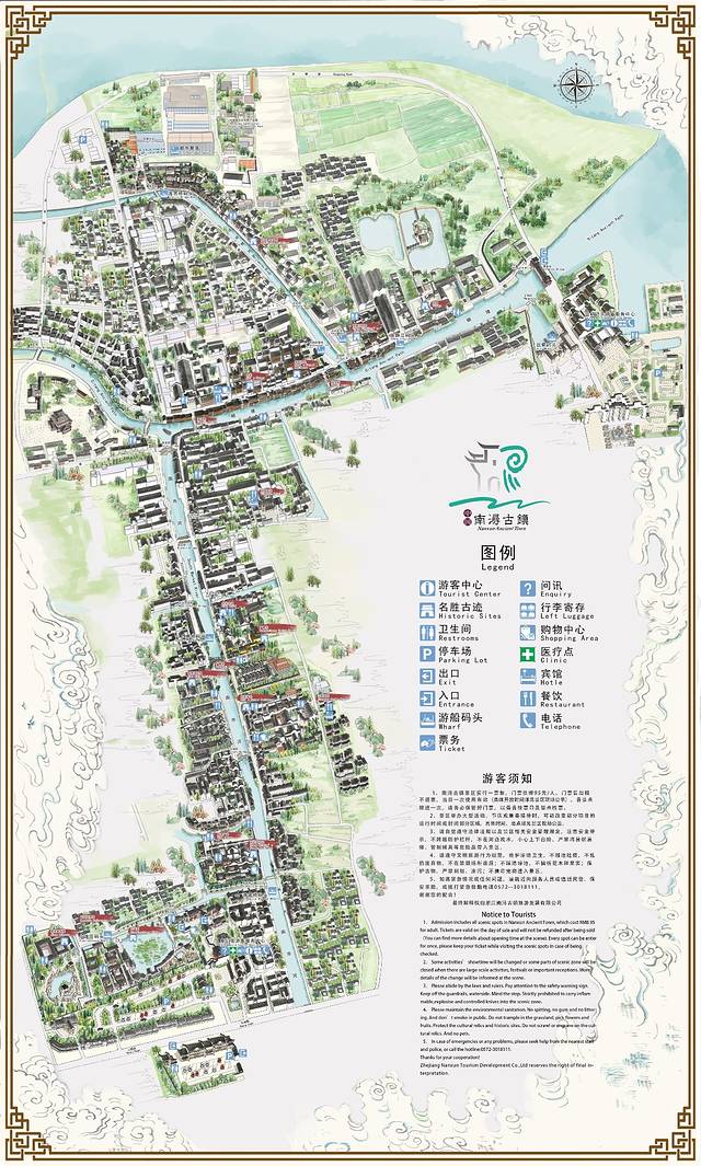 游览线路:游客中心-乌镇大剧院-木心美术馆-草木本色染坊-西栅大街-秀水廊街-女红街-水市口-风雨长廊出入口