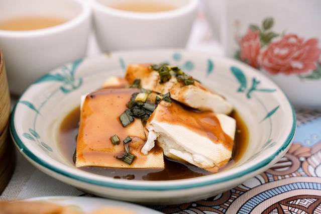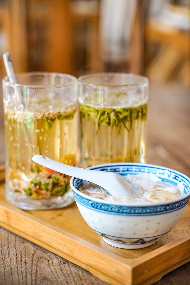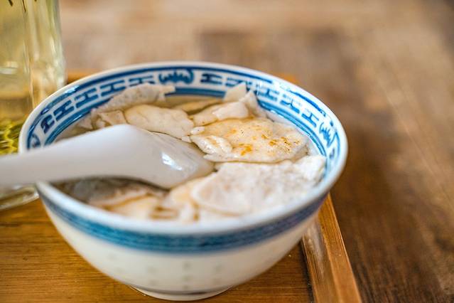 相比于其他甜味的糕点,用肉馅填充的咸鲜茶糕明显是“一股清流”。软糯的米粉包裹着鲜香的肉馅,很像是肉包但是外皮更加糯唧唧有嚼劲了,再配上一壶清茶,古镇的清晨就这样别开生面地登场了。