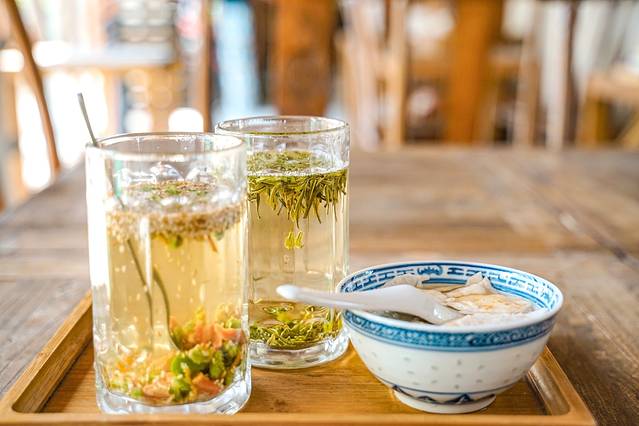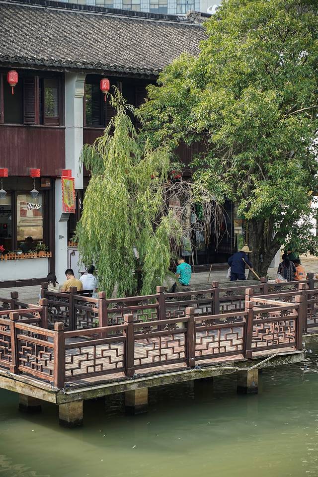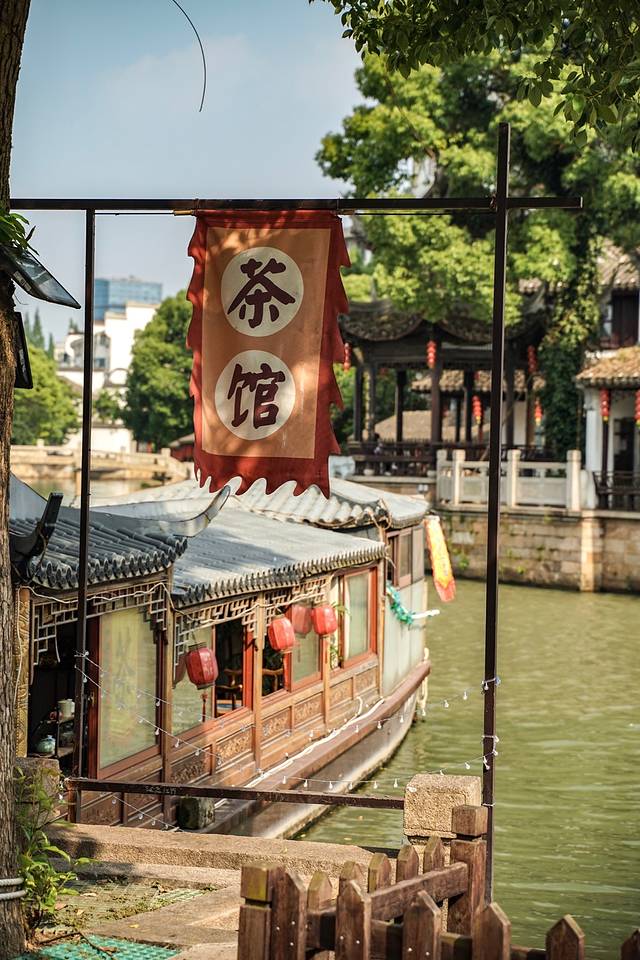 河边一带最多的,便是茶座。相传茶圣陆羽便是在湖州著成了《茶经》,因而湖州这座城市茶文化尤其浓厚。每逢午后,河边的茶座上坐满了在此谈天喝茶的当地人,一坐就是大半天。