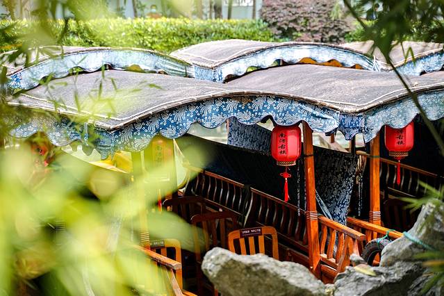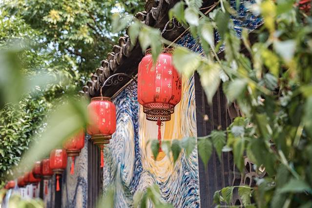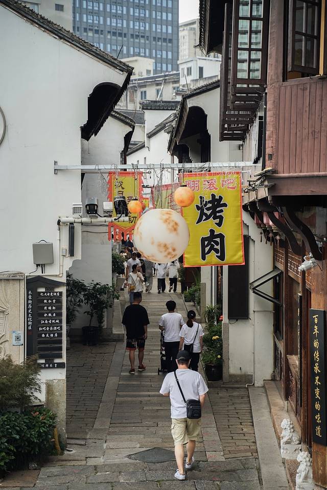 也有一些曲折的小径里,还保留着相当古色古香的文艺气质。屋顶斑驳的瓦片、悬挂的大红灯笼、街巷头顶密密麻麻的油纸伞,仿佛都在用另一种语言,诉说着江南的情愫。