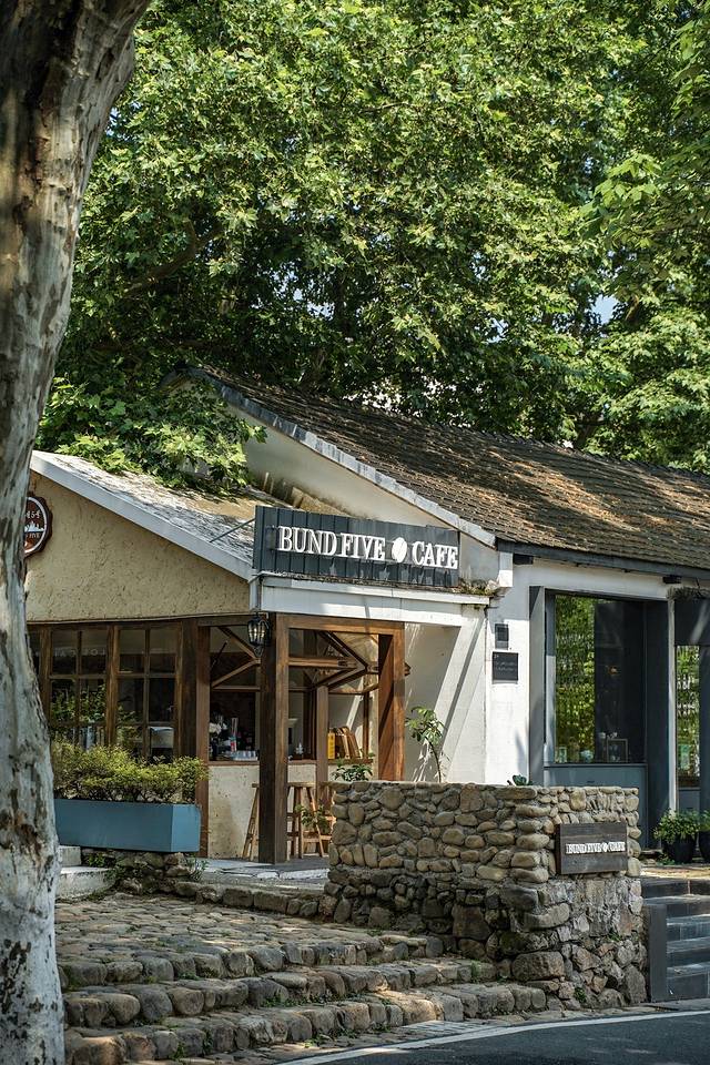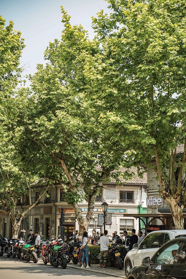 整个庾村被建设成了民国风情,建筑、牌匾和路边的装饰都是满满的民国风。这里商业气息非常发达,咖啡店、甜品店、餐厅、酒店民宿一应俱全。路旁载满了茂盛的法国梧桐树,也让这里氛围感十足。