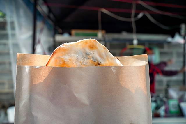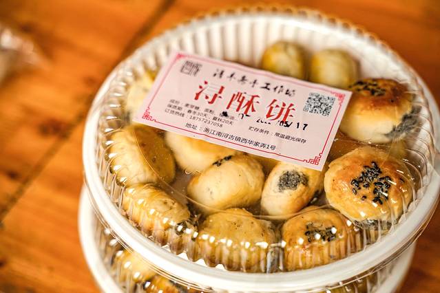 庾村有四个停车场,分别位于村子外围的不同方位,那天在四号停车场取车的时候,看到一位阿姨推着小推车在卖烧饼。现烤出炉的梅干菜烧饼,它足以治愈每一段饥肠辘辘的疲惫旅程。