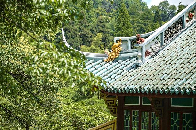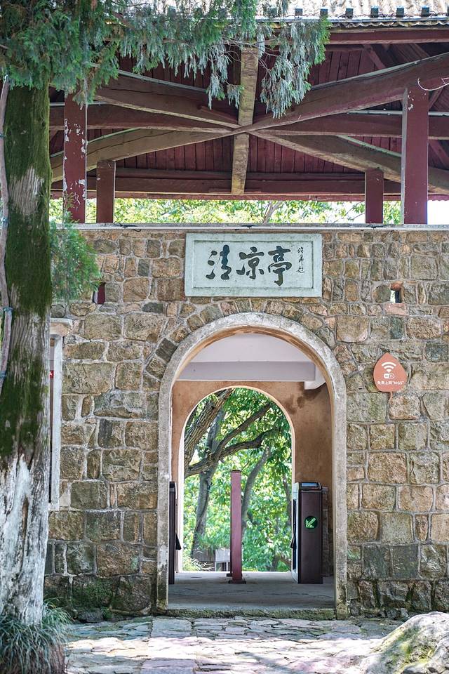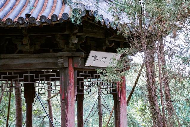相传,当年莫邪、干将夫妇奉吴王阖闾之命,在山中铸剑期间,经常登临附近山岗岩顶,遥望远在吴国的故乡,思念亲人。后人便将他们驻足的地方称作“望吴台”,并建亭以作纪念。如今从剑池再向前走十来分钟,就能看到这座古亭。绿色的屋顶与山势浑然一体,飞起的檐角舒展大气,站在亭前,山景一览无余。