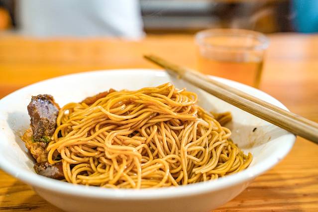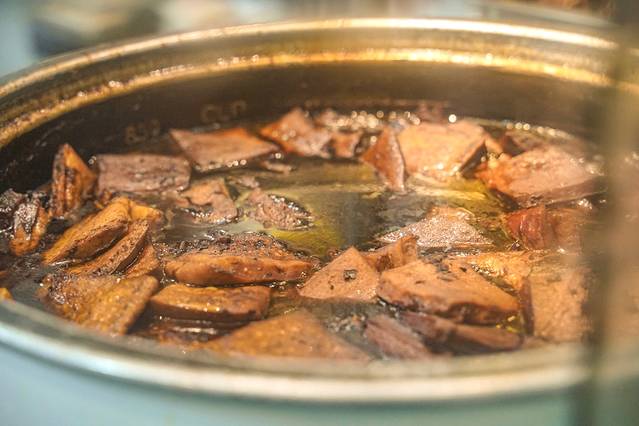 一份羊肉30元,一小碗大概刚好是一个人的食量。红烧的羊肉酱汁浓郁,肉质非常紧实耐嚼,没有什么羊肉的膻味,又放了些许葱姜调味,配上一碗面或者一碗米饭,都是不错的一餐。
