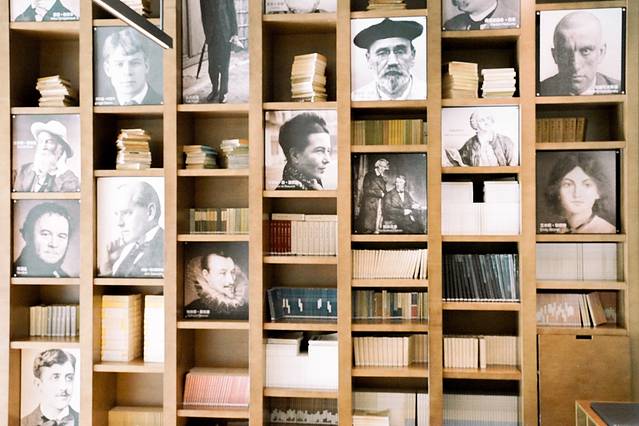 美术馆内亦有一处属于思想者的角落,陈列了众多思想家、作家的经典作品。
