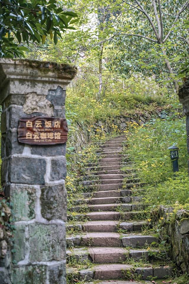 茶还没来得及喝,我先背着相机奔向了白云山馆。抬起头来一条笔直向上的台阶让我心里“咯噔”了一下。以前总说“白云深处有人家”,没想到这些富人连别墅都喜欢建到“白云深处”,像是生怕别人容易找到而惊扰了他们宁静的生活一般。