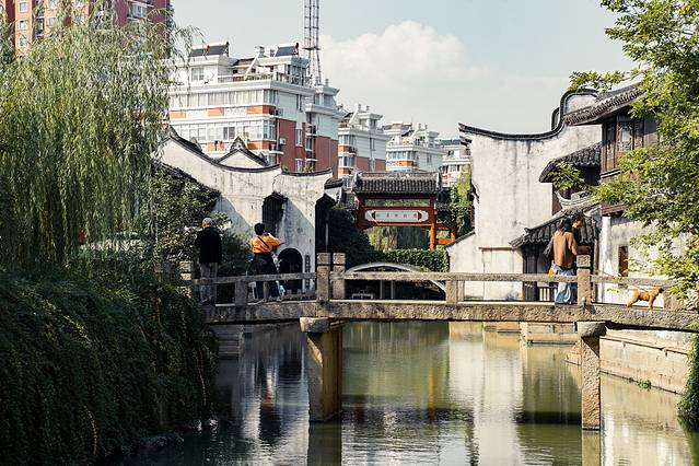 虽然也是改造而成的复古街区,但是这里明显出落得恰到好处:白墙灰瓦的建筑既不过分崭新也不可以做旧;植物的藤蔓从墙缝间生长出来匍匐在墙壁上,出落得恰到好处;石板路的街道、蜿蜒的河道纵横交错,是不是有小船摇摇晃晃地驶过,于静谧之中激起一片涟漪。