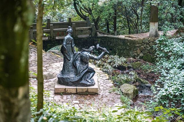 再没有什么能比炎热的夏季,在山里看看水更加舒适的了。头顶的树木遮天蔽日,山泉水带来的清凉让此时此刻汗流浃背的我格外舒适。在泉水的指引下,我于是首先看到了山间正在铸剑的干将莫邪像。