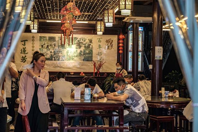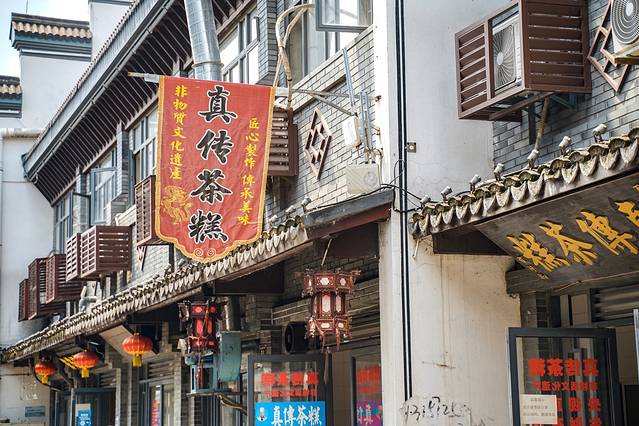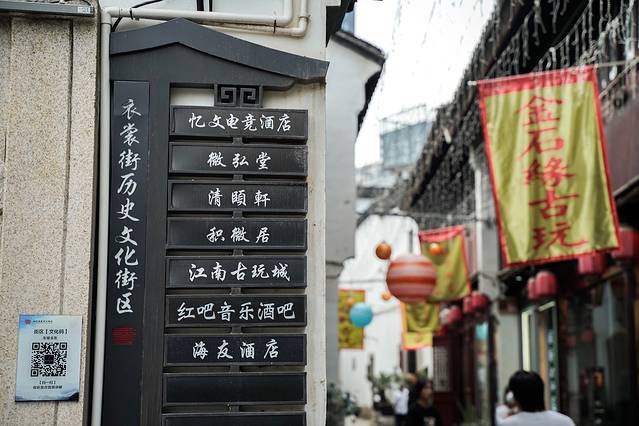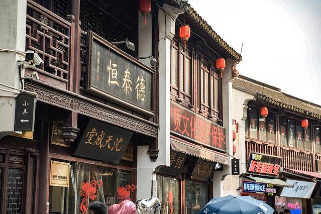 河中尚有游船、茶座,因此这片区域已经尽可能地保留了原始的市井风貌。福泰和,万泰和,新泰和等十多家嫁妆店和陈信源银楼,森益源中药店等皆坐落于此,据说最早可以追溯到东晋时期,谢安故居旧址如今仍然能寻得到痕迹。