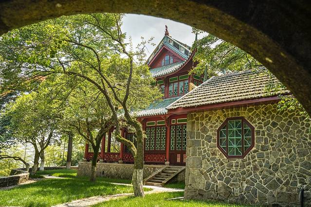 沿着马路向前走几分钟,就到了武陵村的入口。这里是莫干山上一处较为集中的别墅群,其中最有名的一幢,便是蒋介石官邸,也是走进来的第一幢房子。