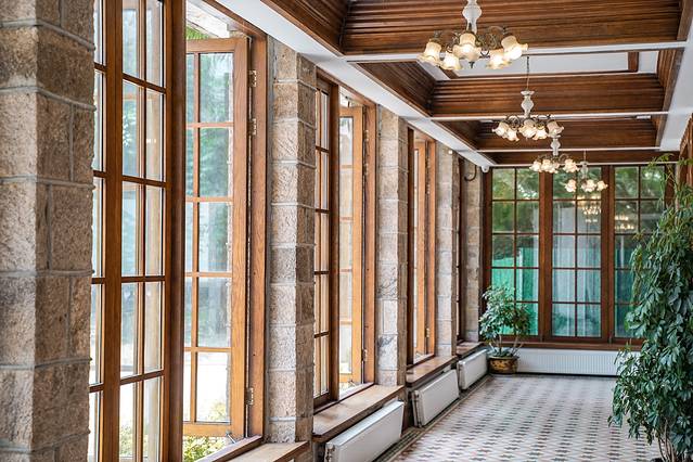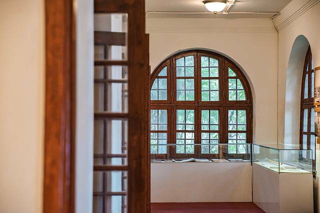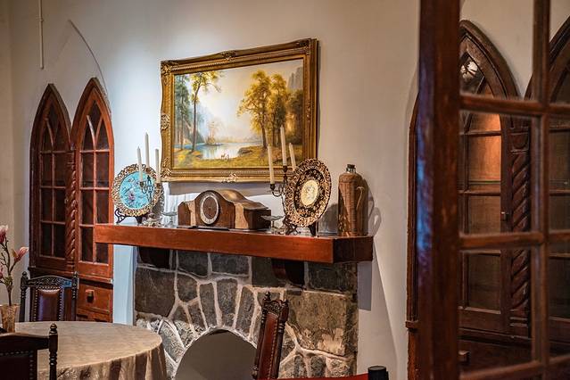 这是一座典型西式风格的别墅,半圆形的木窗、壁炉、油画陈列等都依样保留了下来。如今楼上保留了卧室和会客室,其他房间基本都作为展厅。